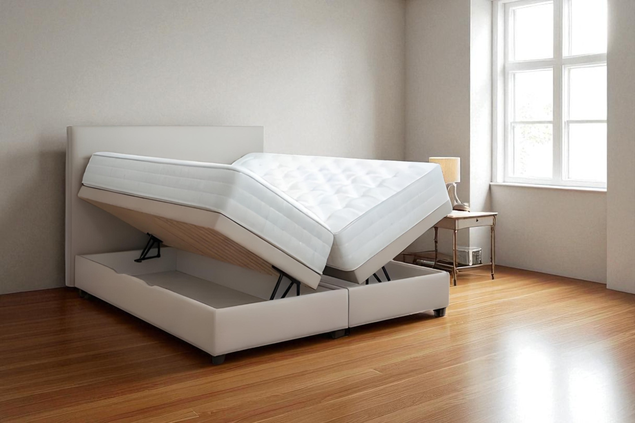 Viele Boxspringbetten in 180×200 cm verfügen über einen integrierten Bettkasten, der sich ideal zur Aufbewahrung von Bettwäsche, Decken oder Kleidung eignet. Je nach Modell erfolgt die Öffnung seitlich oder am Fußende. Besonders praktisch: Der Stauraum ist gut belüftet und leicht zugänglich.