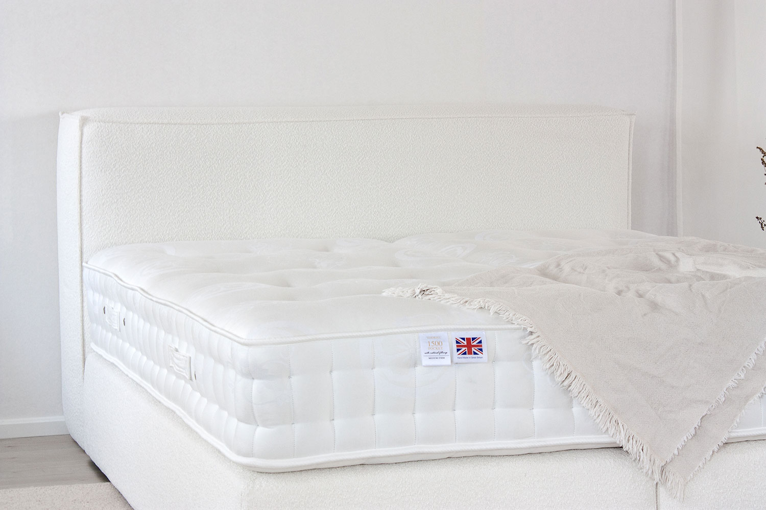 Die „British Harmony“ Matratze bietet dir eine sehr gute handgefertigte Matratze mit allen Vorzügen der antibakteriellen Eigenschaften und der exzellenten Klima-Regulierung durch unsere natürlichen Polstermaterialien.